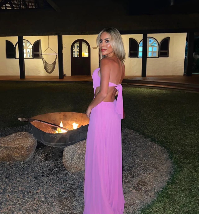 Nas costas, conta com abertura e amarração, proporcionando melhor ajuste ao corpo.