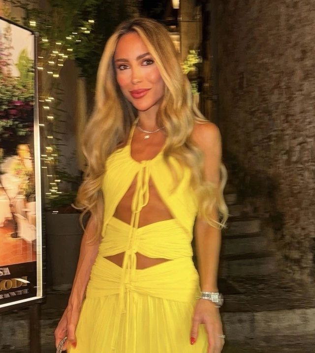 A região da cintura apresenta recortes vazados e faixas drapeadas que contornam o corpo, criando definição na silhueta. A parte superior é mais ajustada até o quadril.